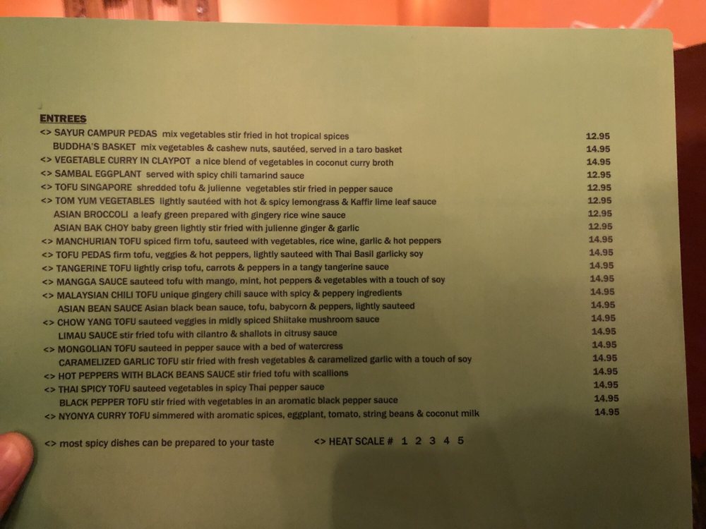 Lightly sauteed with hot and spicy lemongrass and kaffir lime leaf sauce. Vegetarian and spicy.