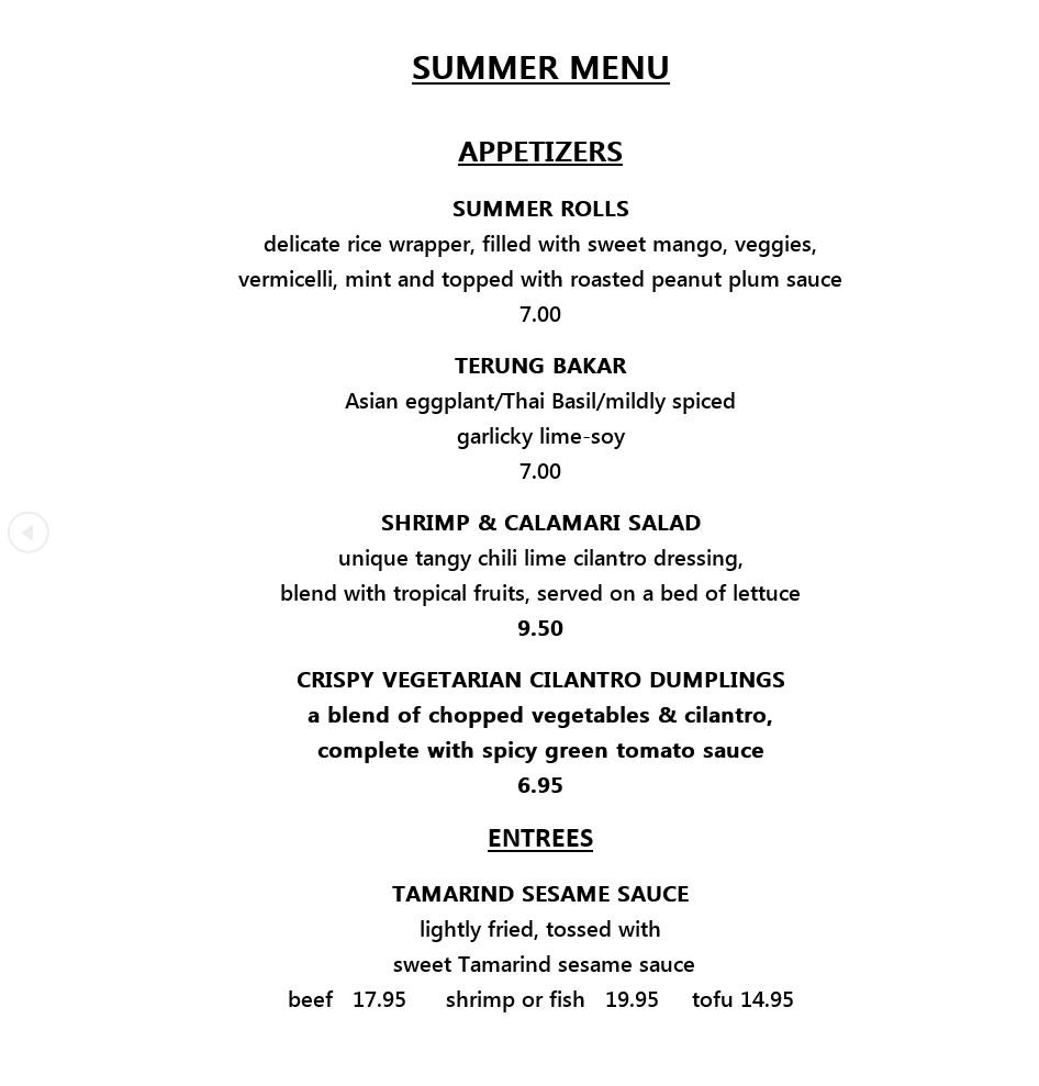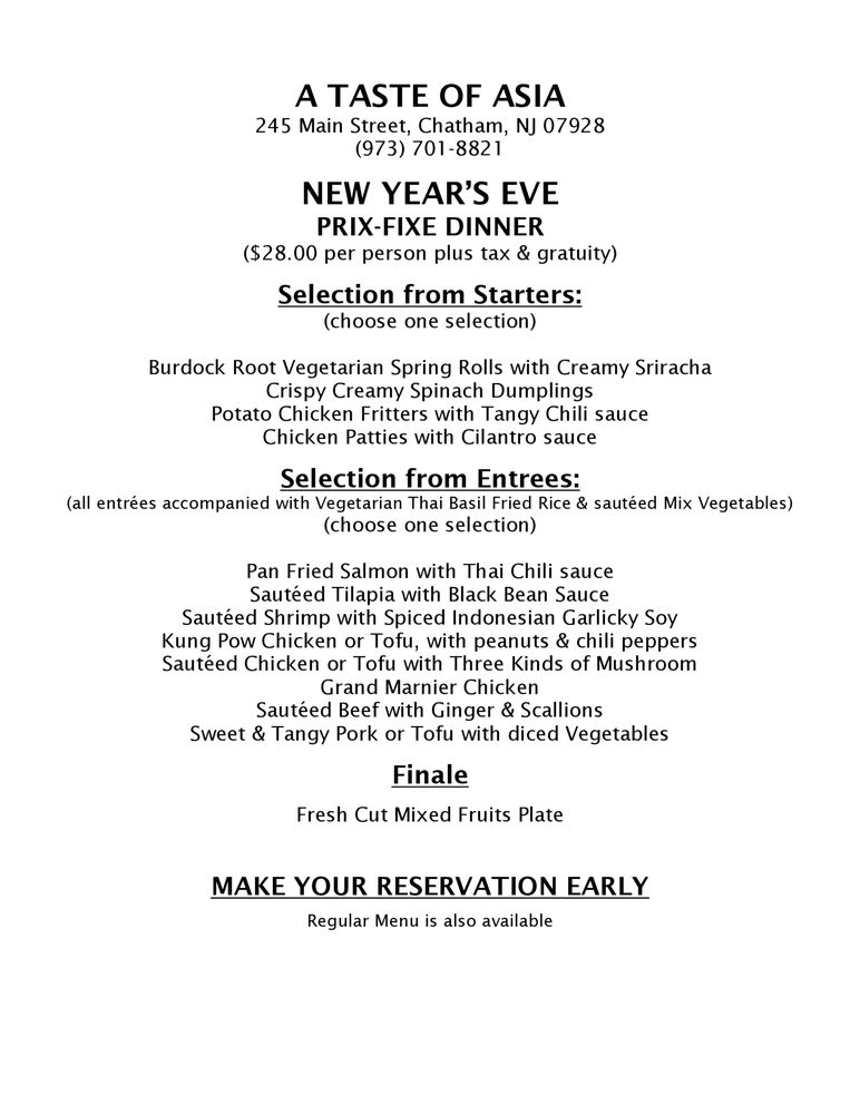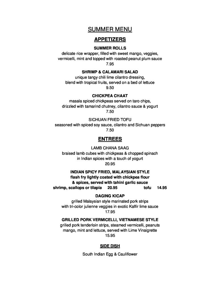 A Taste of Asia Menu